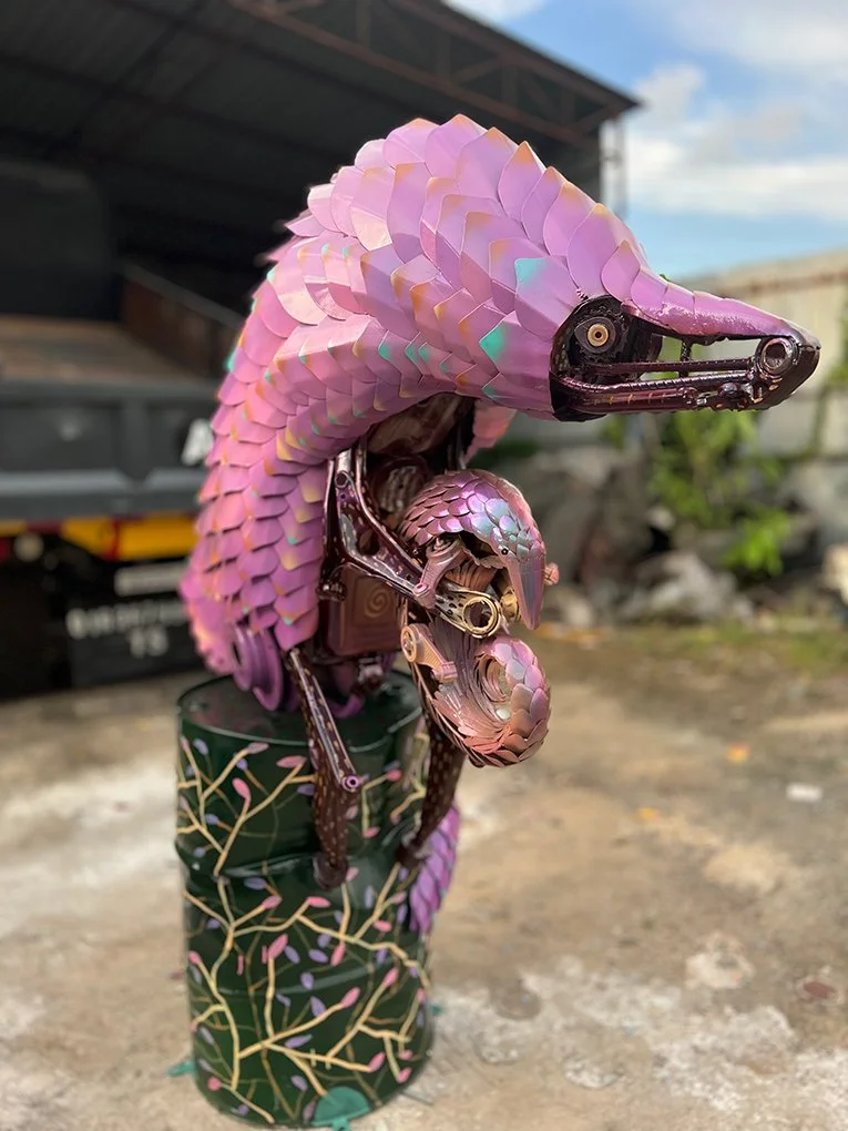 The second series of work featuring another three local endangered species. Constructed mainly out of automotive and construction waste metal, the second series features collaborative work with other local artists in the painting process.