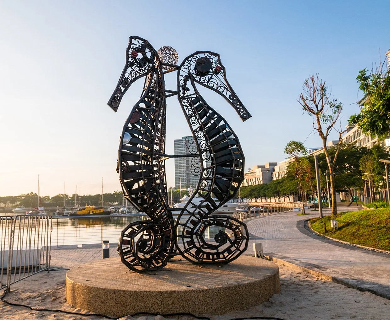 All three of the sculptures are located by the coast of Puteri Harbour, Johor.